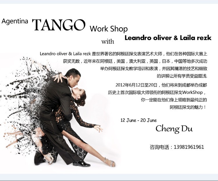 本中心的付代菊老师,多年从事舞蹈教学,有着专业的探戈理念,丰富的教学经验。不仅如此,付代菊老师还以其对探戈的热情感染着身边每一位学员:为了能懂得真正的探戈文化,与阿根廷大师们深入交流,她一直都在坚持不辍地学习西班牙语;而为了使学员们能够学到纯正的阿根廷探戈,她又不惜万里亲赴布宜诺斯艾利斯感受当地风情,跟随****探戈大师进行长时间学习,将地道的探戈带回成都,分享与大家。